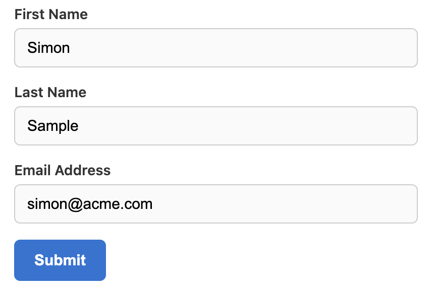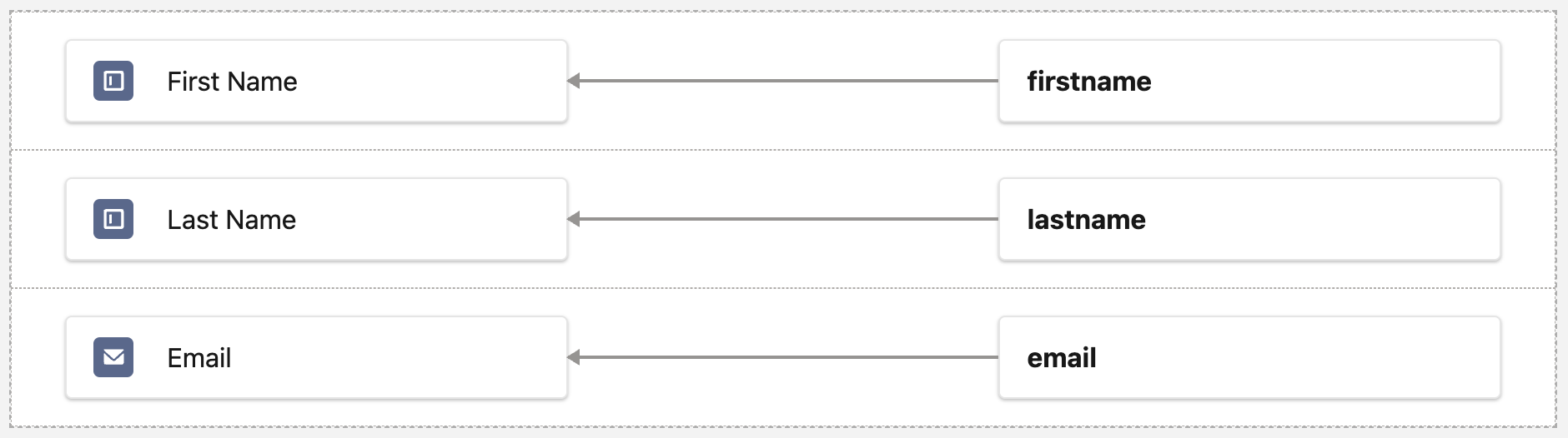 Last NameandEmailfields. - Click on each form component and enter the corresponding values in the External Field Name fields as follows: